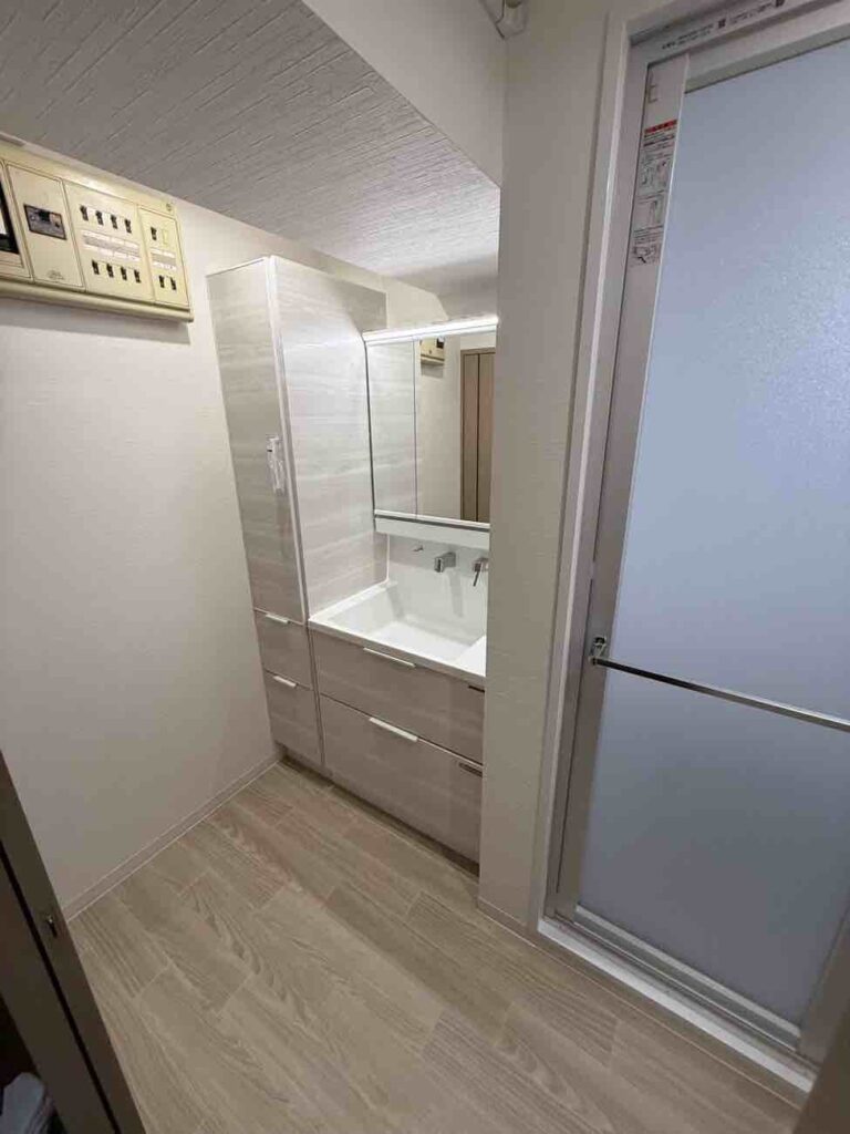 タカラスタンダードのホーロー洗面化粧台「ファミーユ」へ交換し、洗面空間を明るく一新しました✨